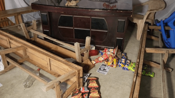 এসময় উঠানে রক্ষিত ফার্নিচারের জন্য মূল্যবান কাঠ (প্রায় ৩০,০০০ টাকা মূল্যের) লুট করে নিয়ে যায় এবং নিজেদের একটি কাচারী ঘর এনে ঘরের সামনে স্থাপন করে যাতে কেউ বের হতে না পারে। পরে পুত্রবধু এসে তাকে তালা খুলে উদ্ধার করেন। প্রতিবাদ করায় বিবাদীরা তাদের এলোপাতাড়ি মারধর করে শরীরে নীলাফুলা জখম করে। এরপর তারা ঘরের জানালা ও বারান্দায় ইট-পাটকেল ছুড়ে বাড়ি ভাঙচুর করে প্রায় ১০,০০০ টাকার ক্ষতিসাধন করে।