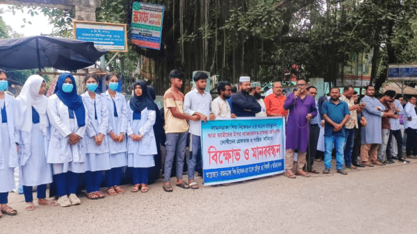 নবীনগরে আ.লীগপন্থী চেয়ারম্যানকে পূর্ণবাসন চেষ্টার প্রতিবাদে মানববন্ধন