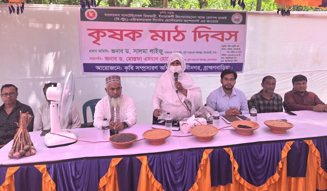 বাংলাদেশ সাসটেইনেবল রিকভারি, ইমার্জেন্সি প্রিপেয়ার্ডনেস অ্যান্ড রেসপন্স প্রজেক্ট (বি স্ট্রং)-এর আওতায় ব্রাহ্মণবাড়িয়ার নবীনগর উপজেলার ইব্রাহিম ইউনিয়নে বীজ প্রযুক্তি গ্রাম প্রদর্শনীর ওপর এক বর্ণাঢ্য মাঠ দিবস অনুষ্ঠিত হয়েছে। এতে শতাধিক কৃষকের স্বতঃস্ফূর্ত অংশগ্রহণ লক্ষ্য করা যায়। অনুষ্ঠানে উপজেলা কৃষি অফিসার কৃষিবিদ মো: জাহাঙ্গীর আলম লিটনের সঞ্চালনায় সভাপতিত্ব করেন জেলা কৃষি সম্প্রসারণ অধিদপ্তরের উপপরিচালক ড. মোস্তফা এমরান হোসেন। প্রধান অতিথি হিসেবে উপস্থিত ছিলেন কৃষি সম্প্রসারণ অধিদপ্তরের পরিচালক (ক্রপস উইং) কৃষিবিদ ড. সালমা লাইজু।