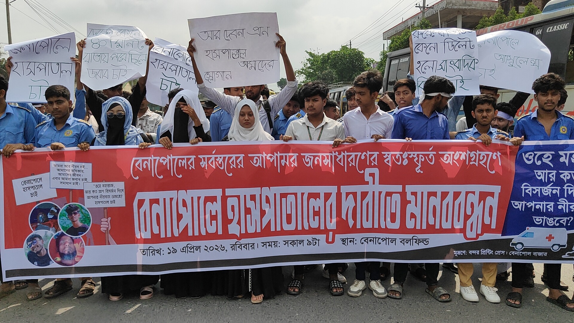 বেনাপোলে হাসপাতালের দাবিতে মানববন্ধন, পরে তিন ঘণ্টা সড়ক অবরোধ