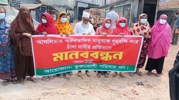আশুলিয়ায় জমি বিরোধে নারী-শিশুসহ অর্ধশতাধিক মানুষ গৃহবন্দী, প্রশাসনের হস্তক্ষেপ দাবিতে মানববন্ধন